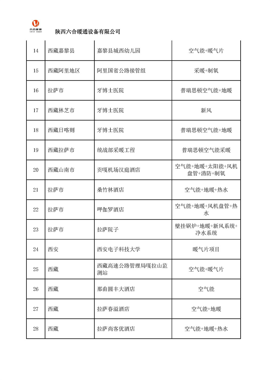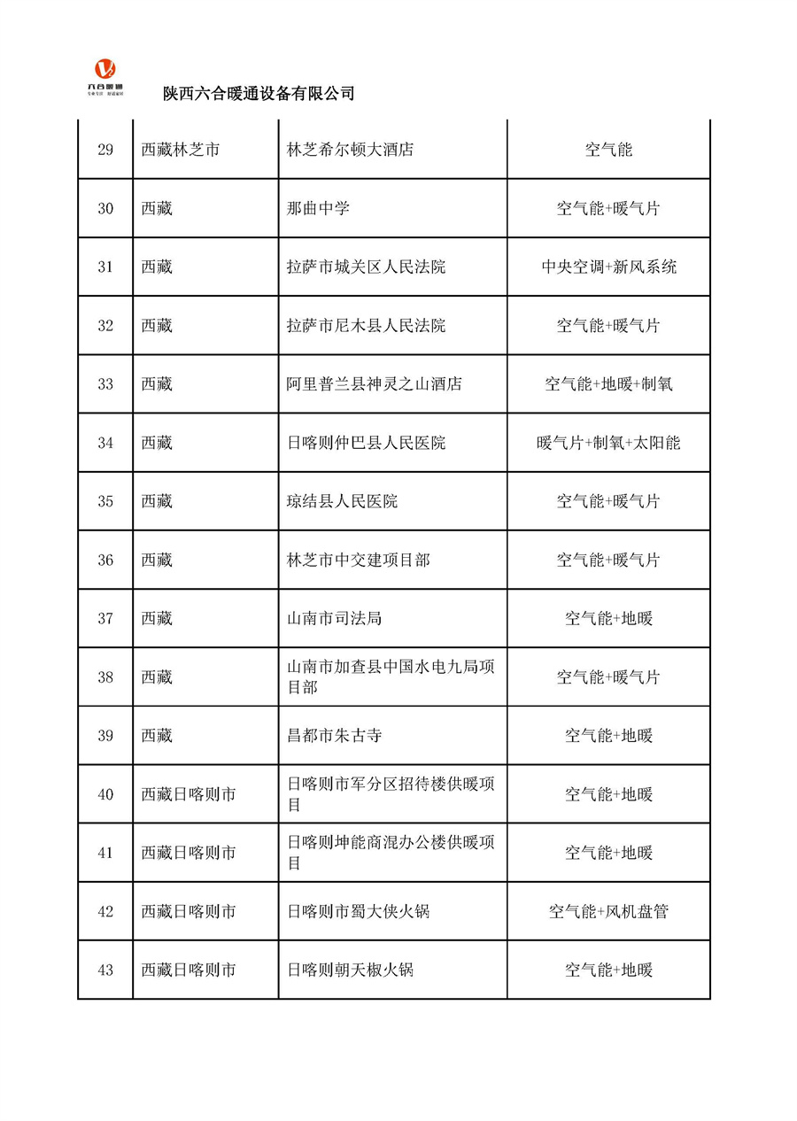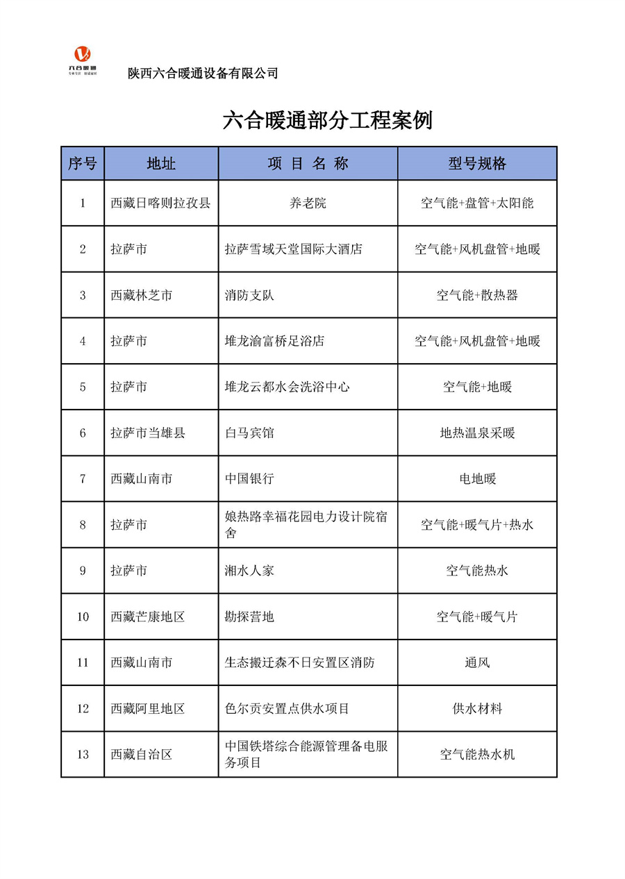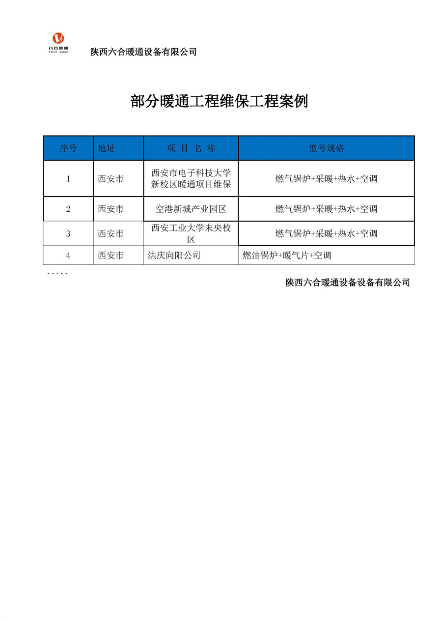 陜西六合暖通設(shè)備有限公司部分工程案例