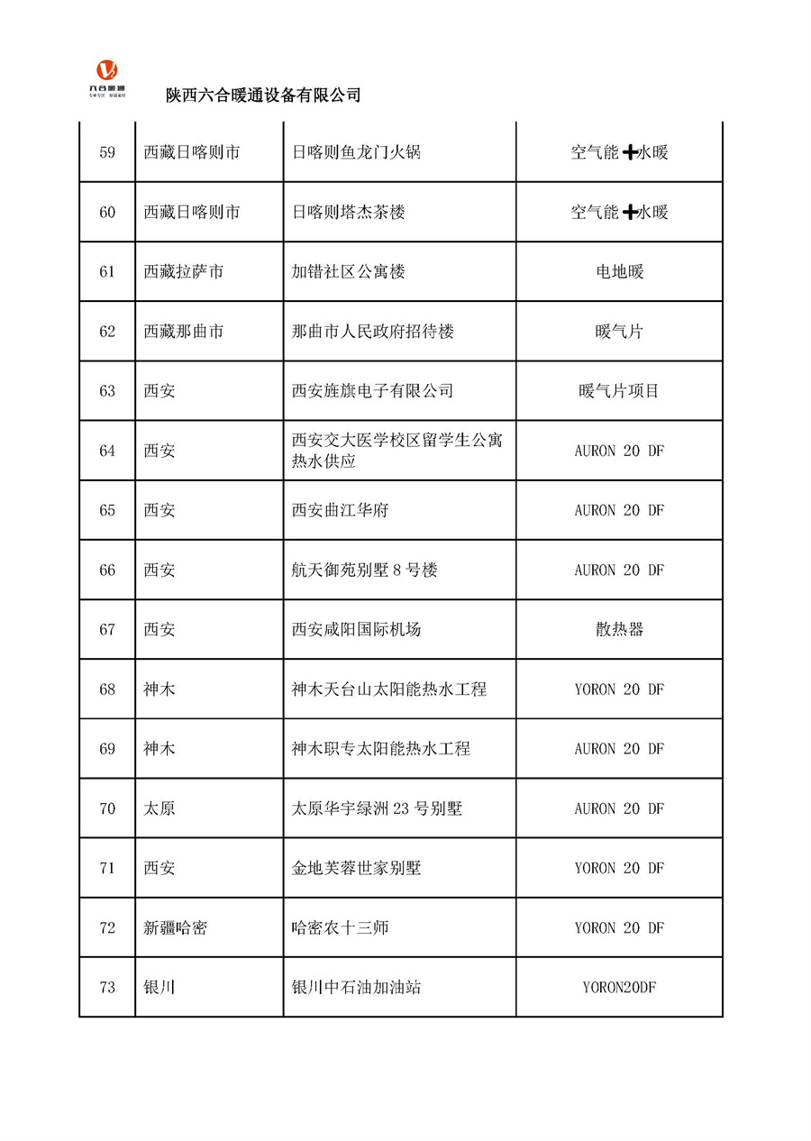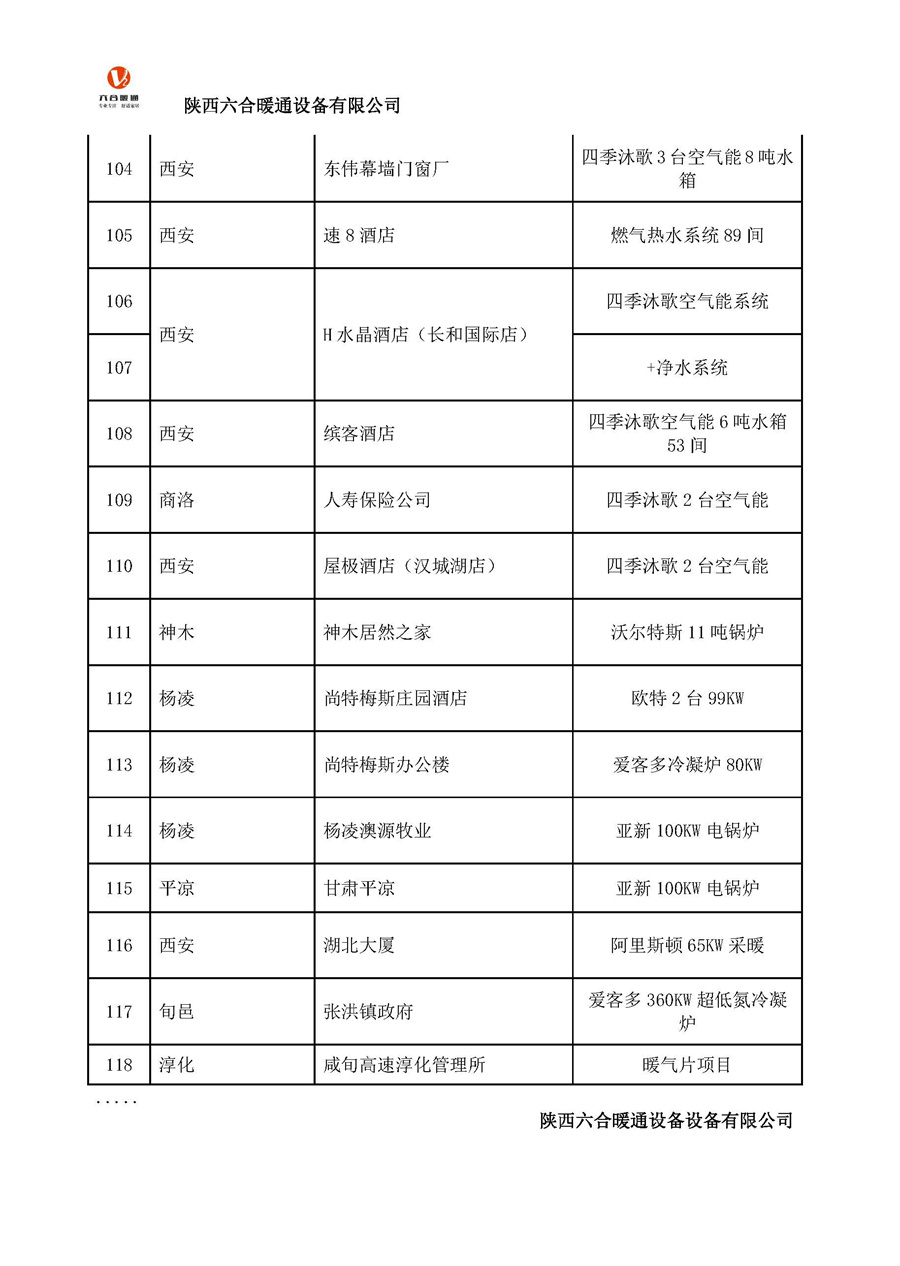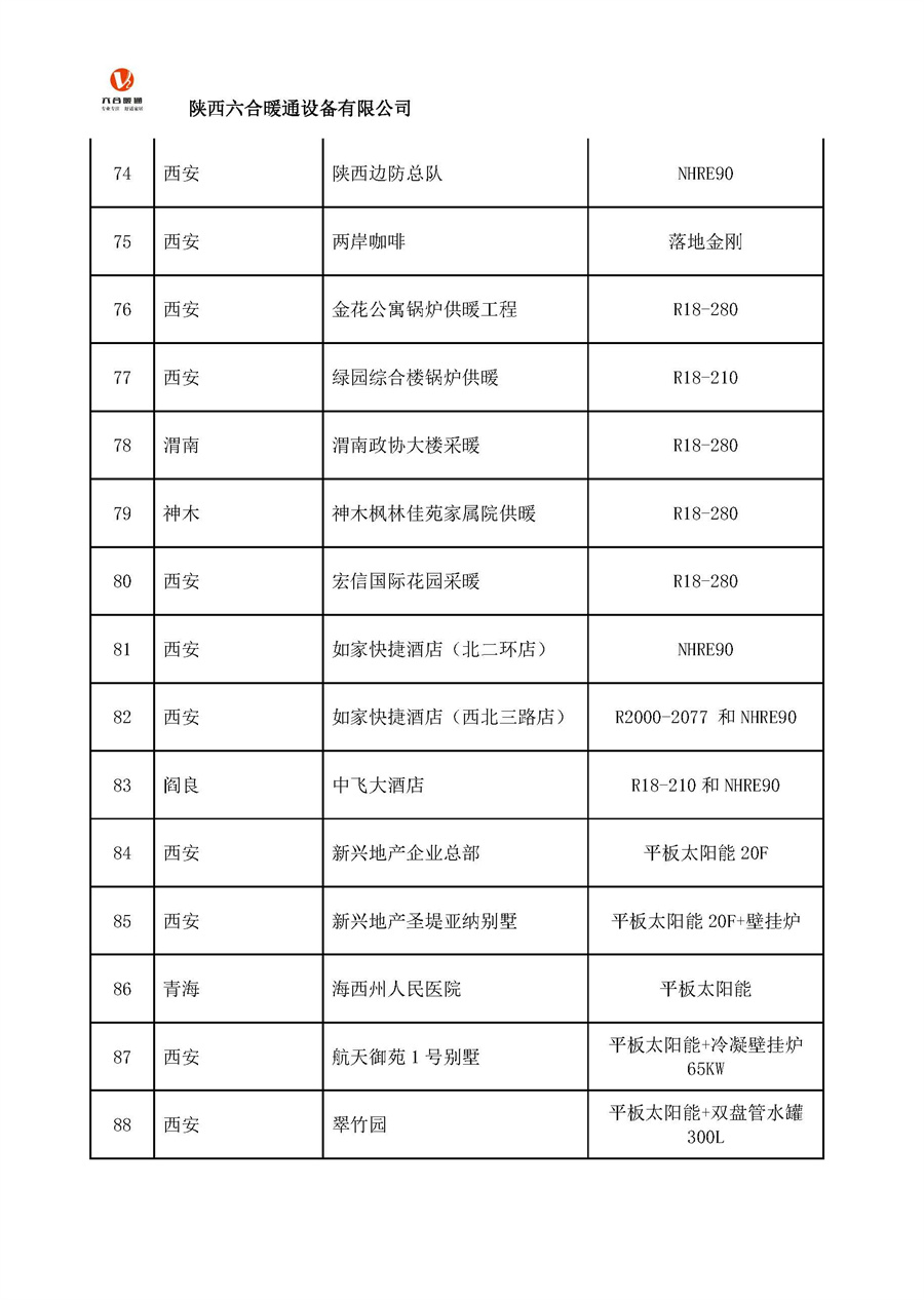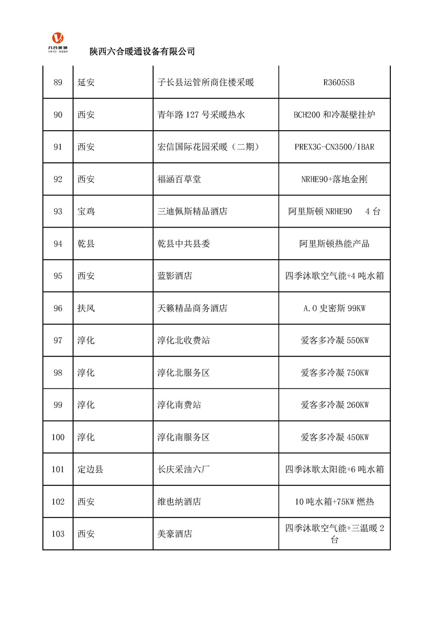 陜西六合暖通設(shè)備有限公司部分工程案例